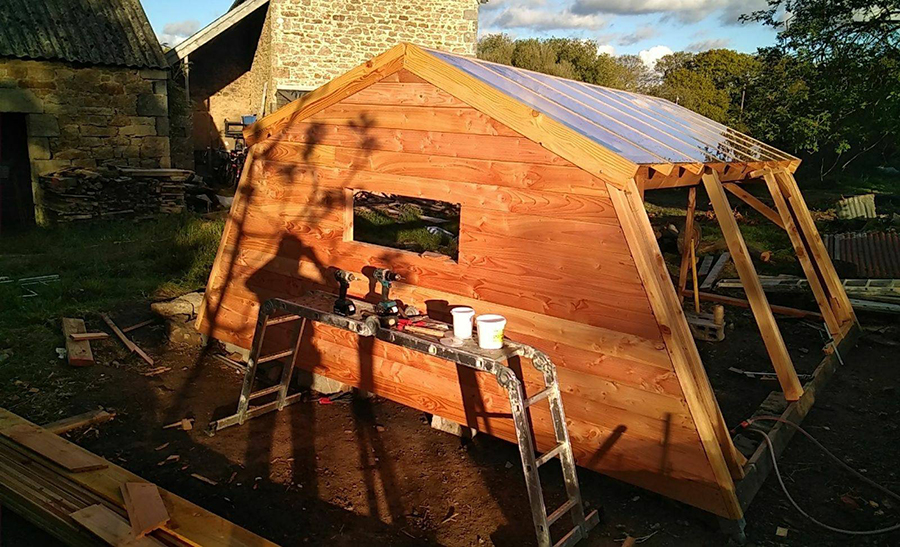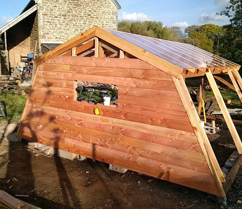 On est pas loin du but. La pose du bardage nous a fait gagné un peu de temps mais il reste les côtés à réaliser pour assurer un confort à l’intérieur. Nous avons également commandé la faitière.