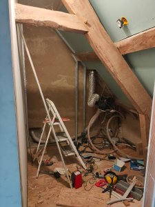 Il y a pas mal de travail avant d’emménager au grenier mais en deux week-end les choses ont bien évolué.
