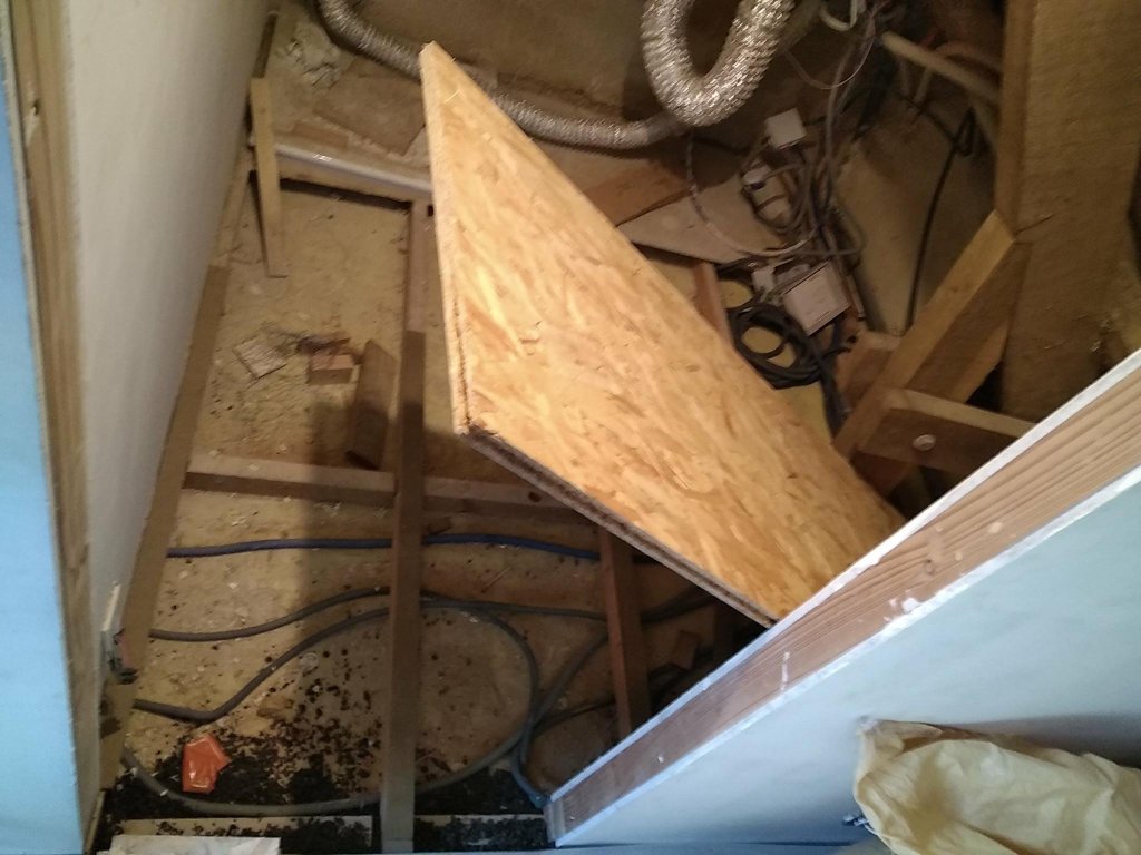 Opérations dans l’ordre : le sol en osb, les rails, le placo, l’électricité, la plomberie et puis les finitions.