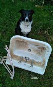 Ce trop mignon lavabo (le truc blanc pas la chipou !) issu d’un hôtel de Quimper va trouver sa place là haut. Il a fallu revoir ses fixation car il n’est pas léger.