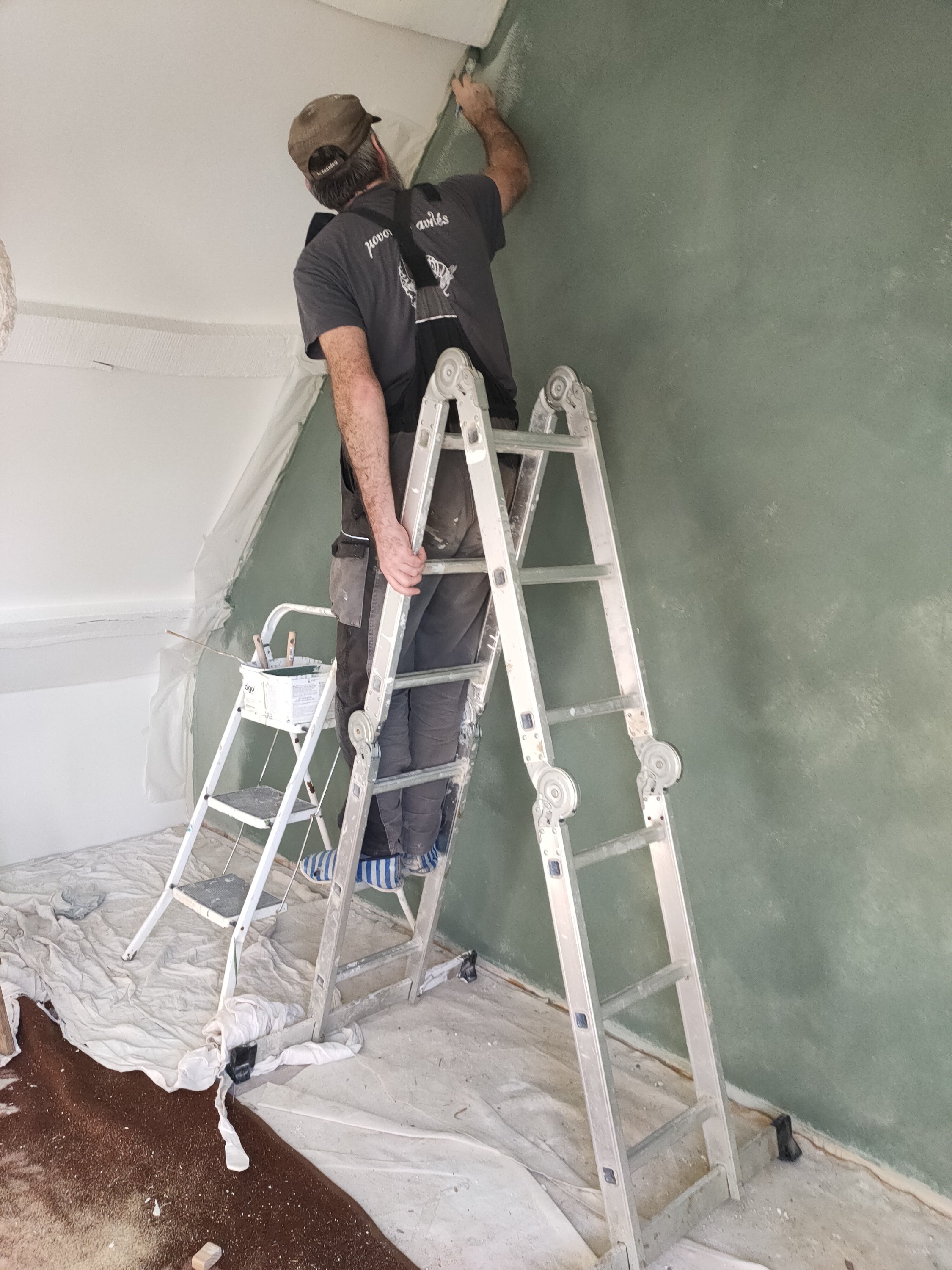 On attaque les petites retouches de peinture à droite à gauche, la peinture des baguettes d’angle,…