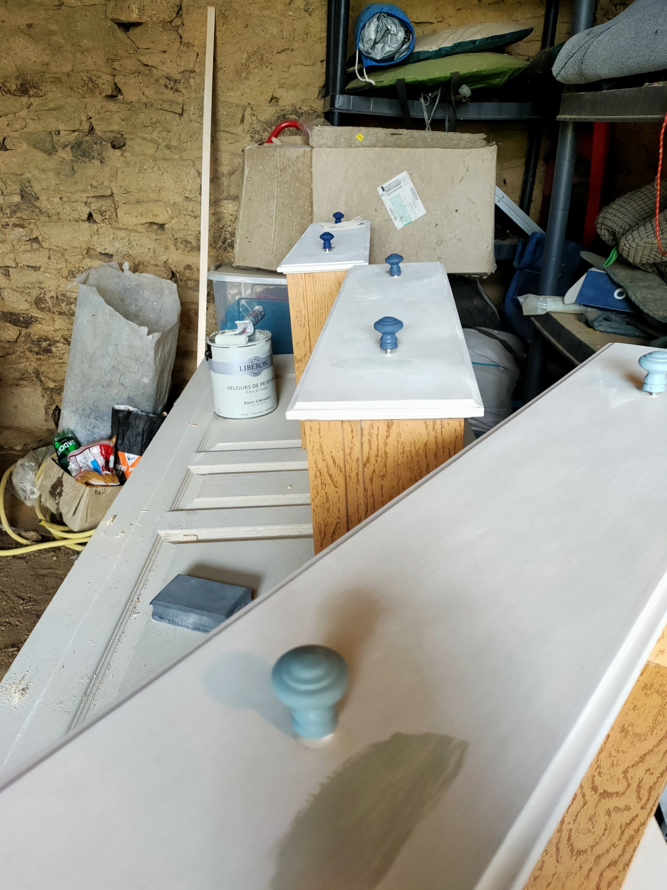 Une fois le montage réalisé, nous sommes passés à l’étape peinture avec les restes des teintes utilisées dans la maison.
