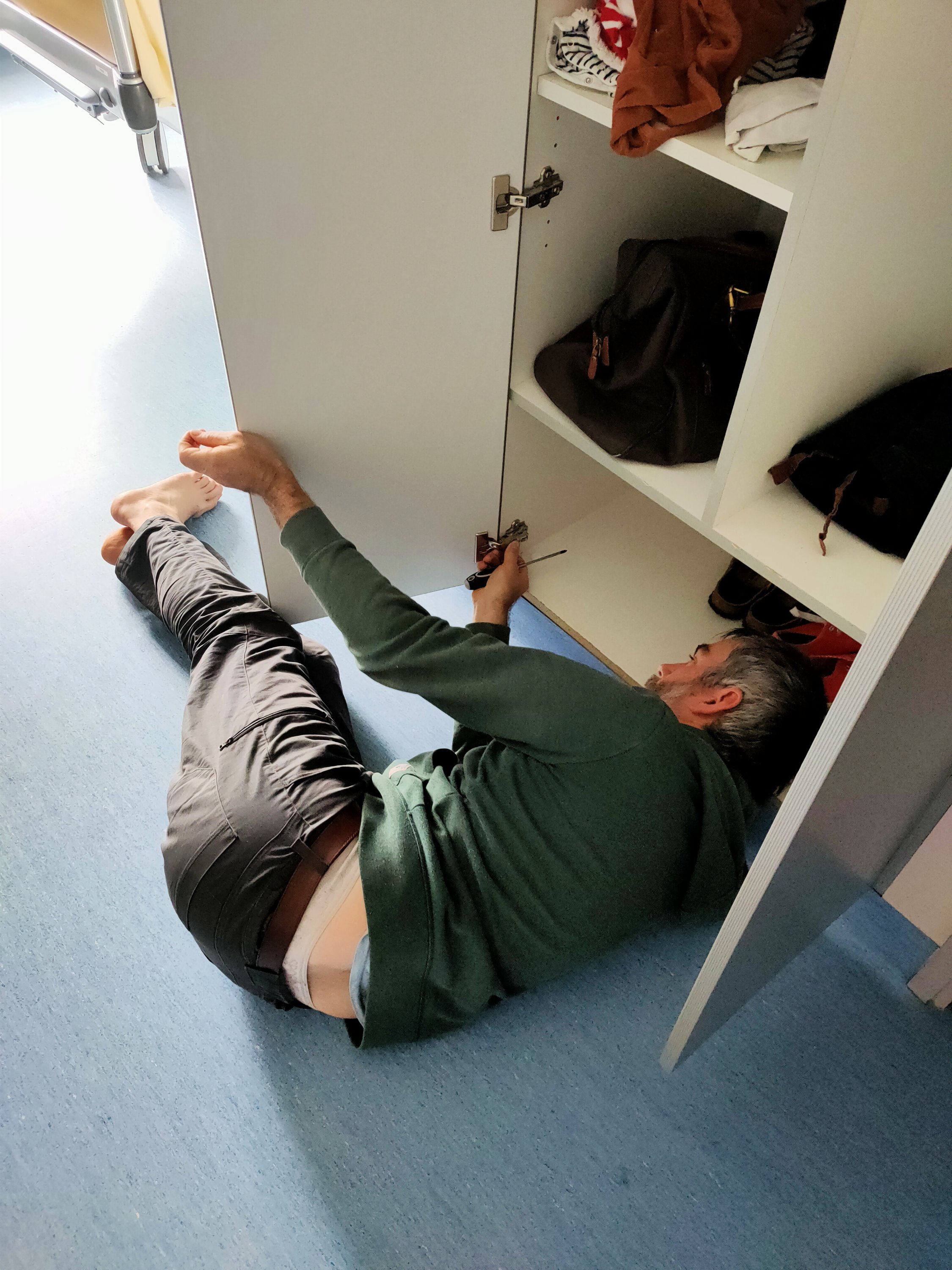 Gwen avait préparé une rehausse pour la commode que nous avions acheté sur le bon coin il y a plusieurs mois.