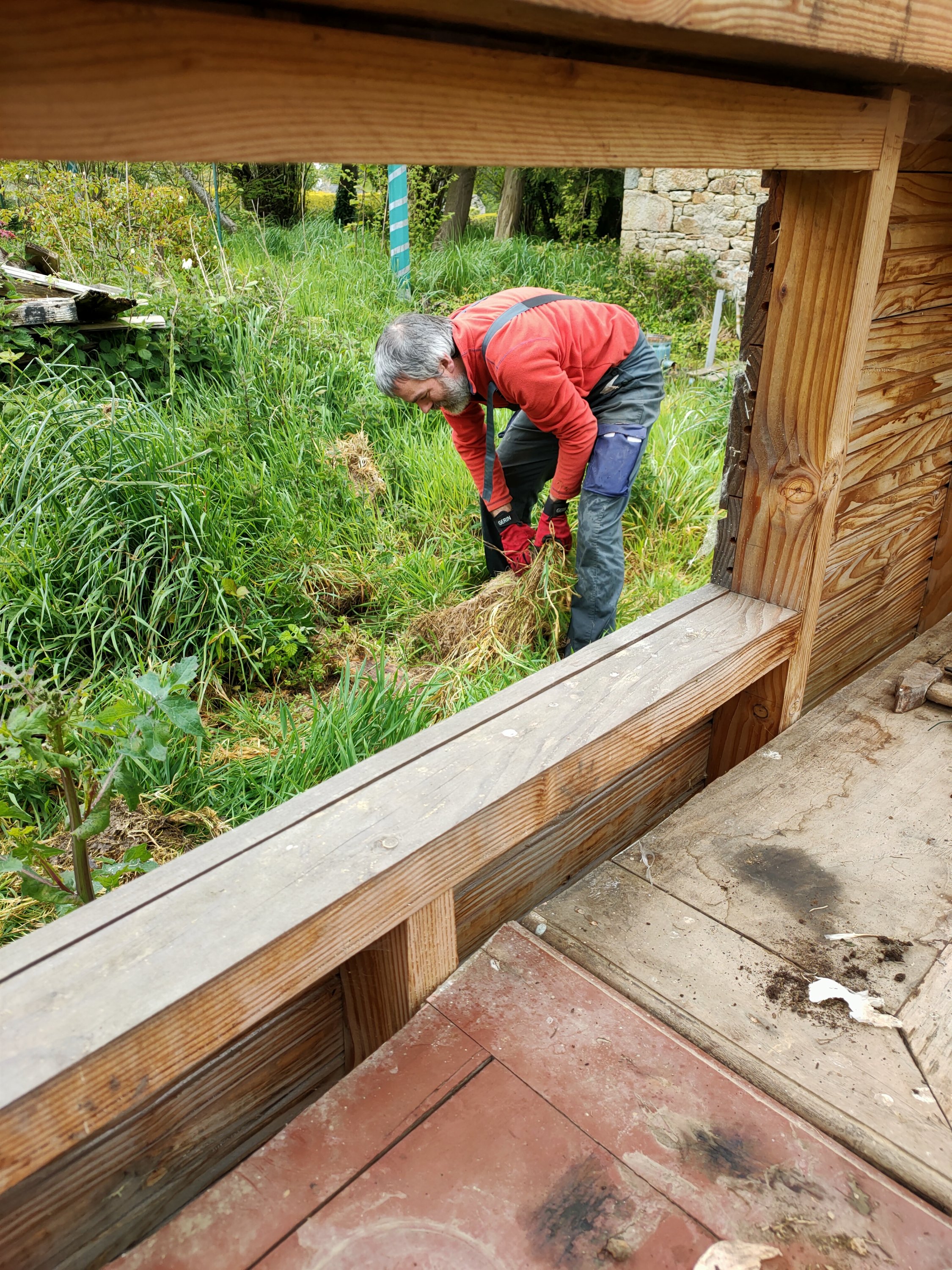 Dehors : Préparer la pose du bardage qui ira sur le pignon Ouest, prévoir une terrasse devant la maison, vider l’appentis Nord pour réaliser un sol et ranger la grange pour commencer à vider la longère …
