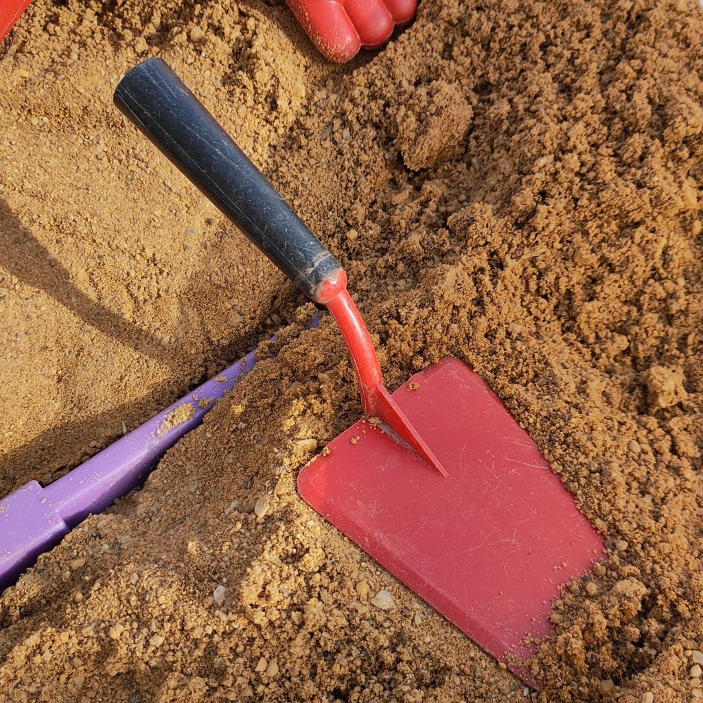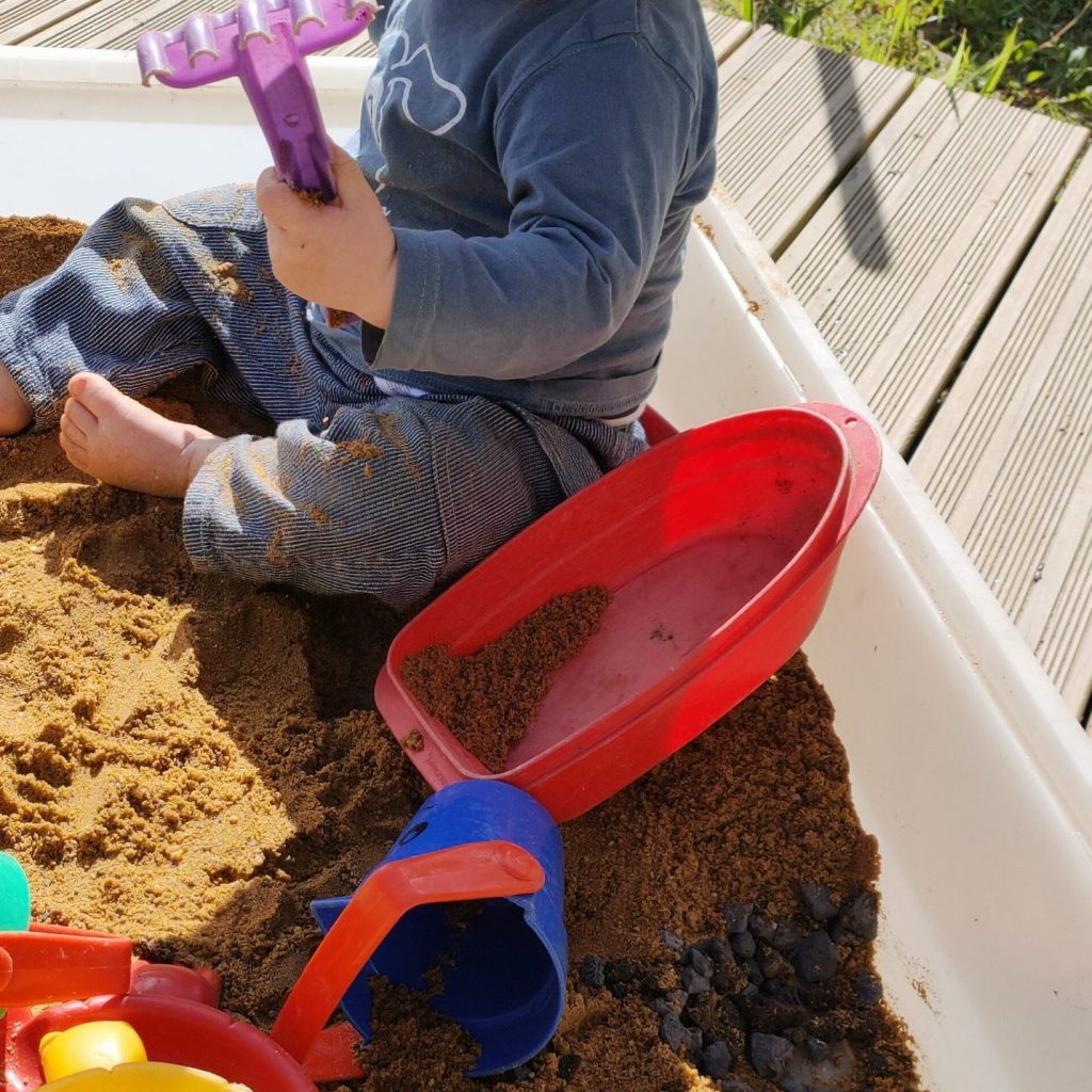 Bonus : réutilisation d’une boite récupérée à la déchetterie pour créer un mini bac à sable pour le monstre, famille de la bricole, il a aussi sa truelle !
