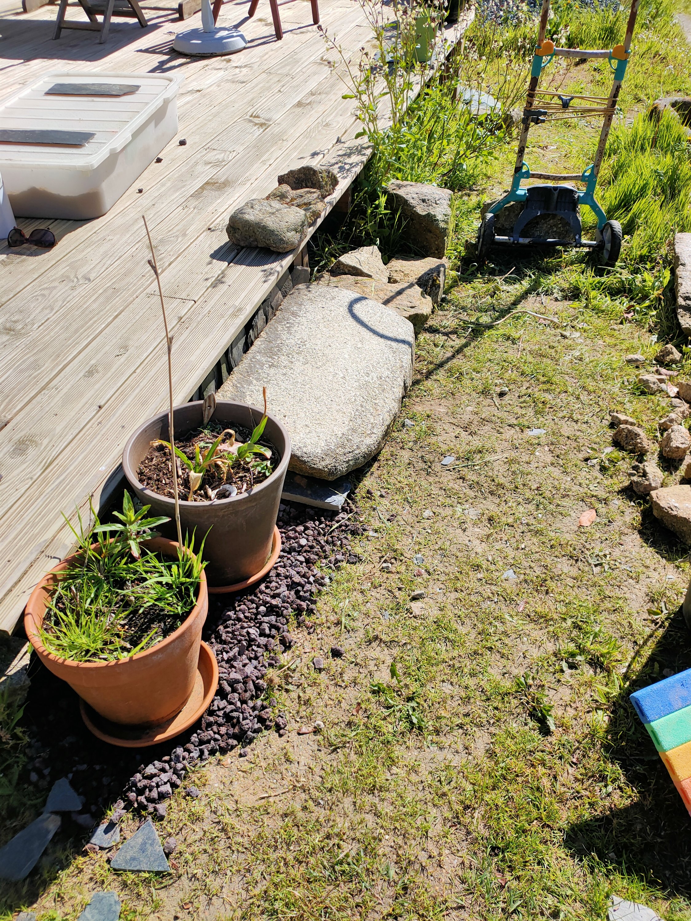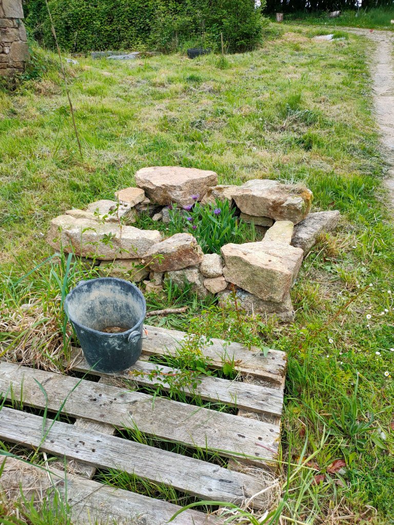 J’ai réinstaller une des pierres d’origine. Les deux autres seront utilisées pour la seconde partie de la terrasse qu’on installera plus tard.