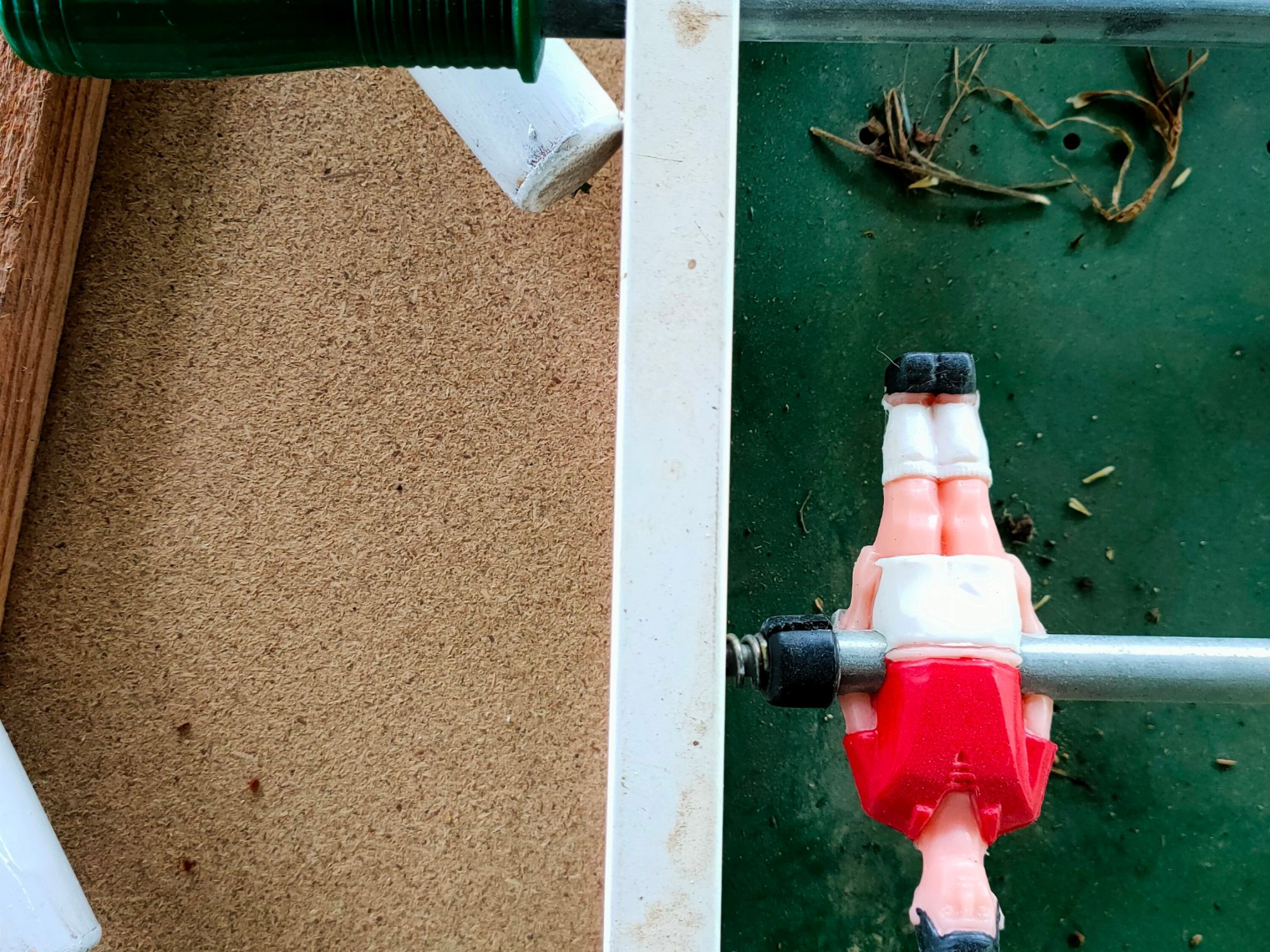 Ensuite on a posé les poteaux, refait le niveau et puis vissé.