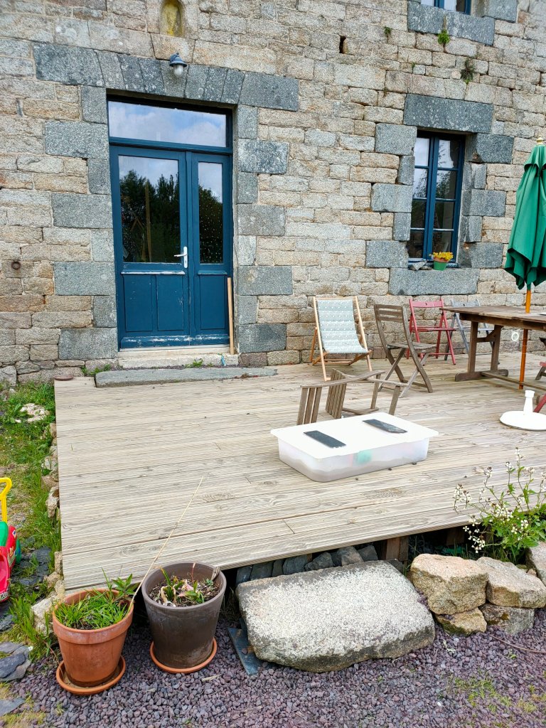 Mai 2023 : une marche toute belle pour accéder à la terrasse, une nouvelle clenche de porte, un bac à sable, une chaine longue, des apéros, …