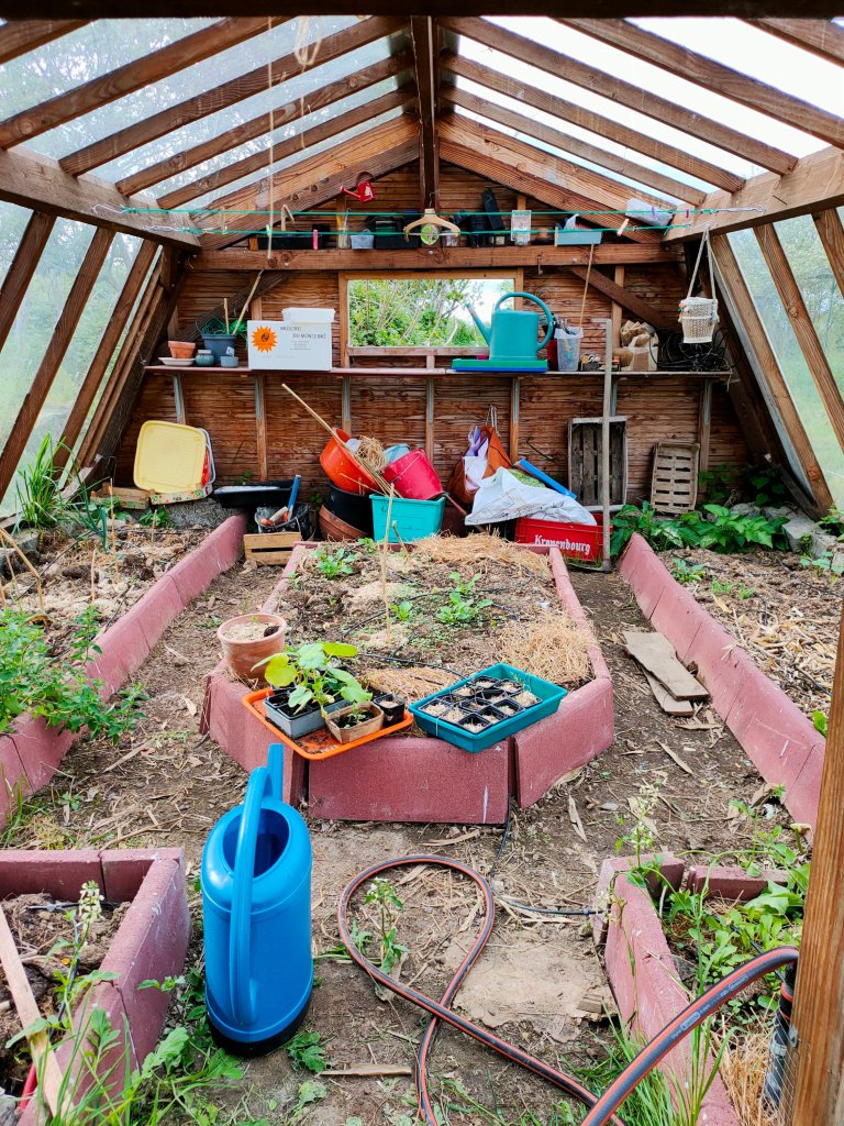 Début du printemps : les petits semis prennent la température de la serre pour continuer de grandir tranquillement, les premiers semis ont été fait en terre.