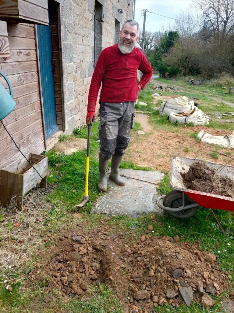 On aimerait : finir les chantiers commencés (Bardage de la buanderie, Gouttières des granges et récupérateur d’eau pour la serre, branchement de la prise pour la voiture, rangement des espaces et déménagement de l’atelier), installer un chauffe eau solaire, vider la longère, …