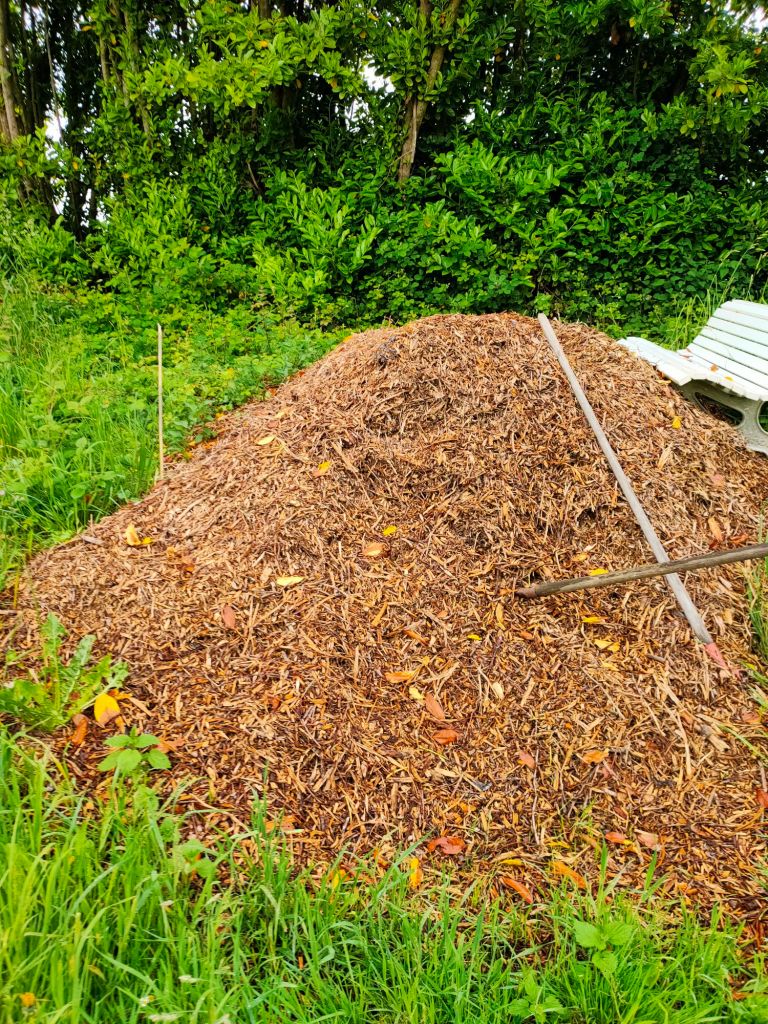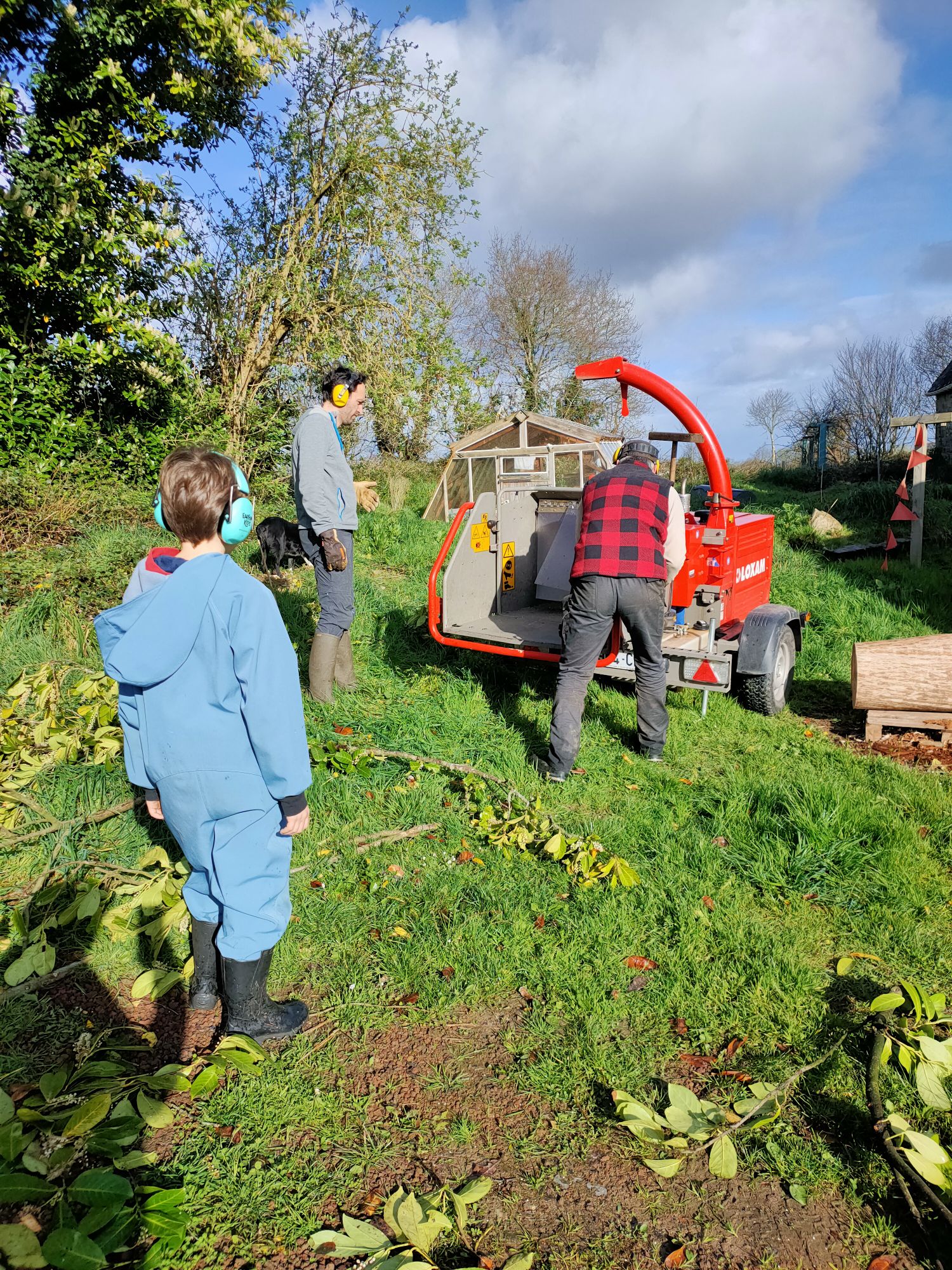 Après les grosses sessions découpes dans le jardin et en collaboration avec nos voisins on passe à l’étape deux : le broyat.