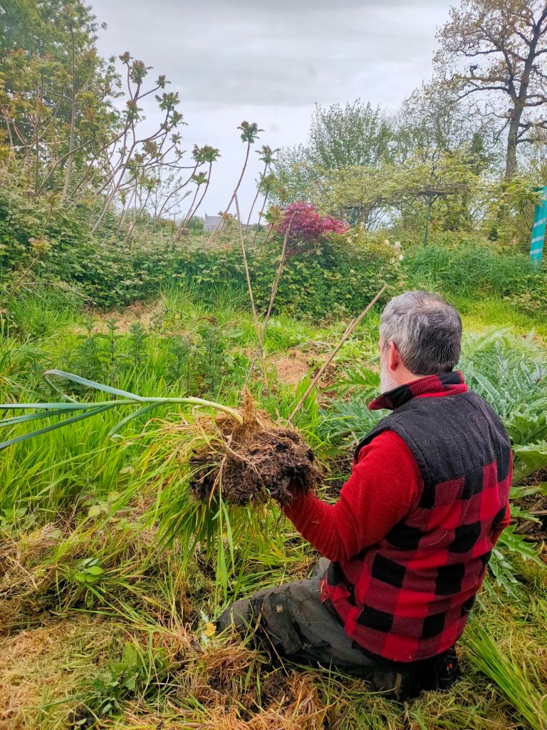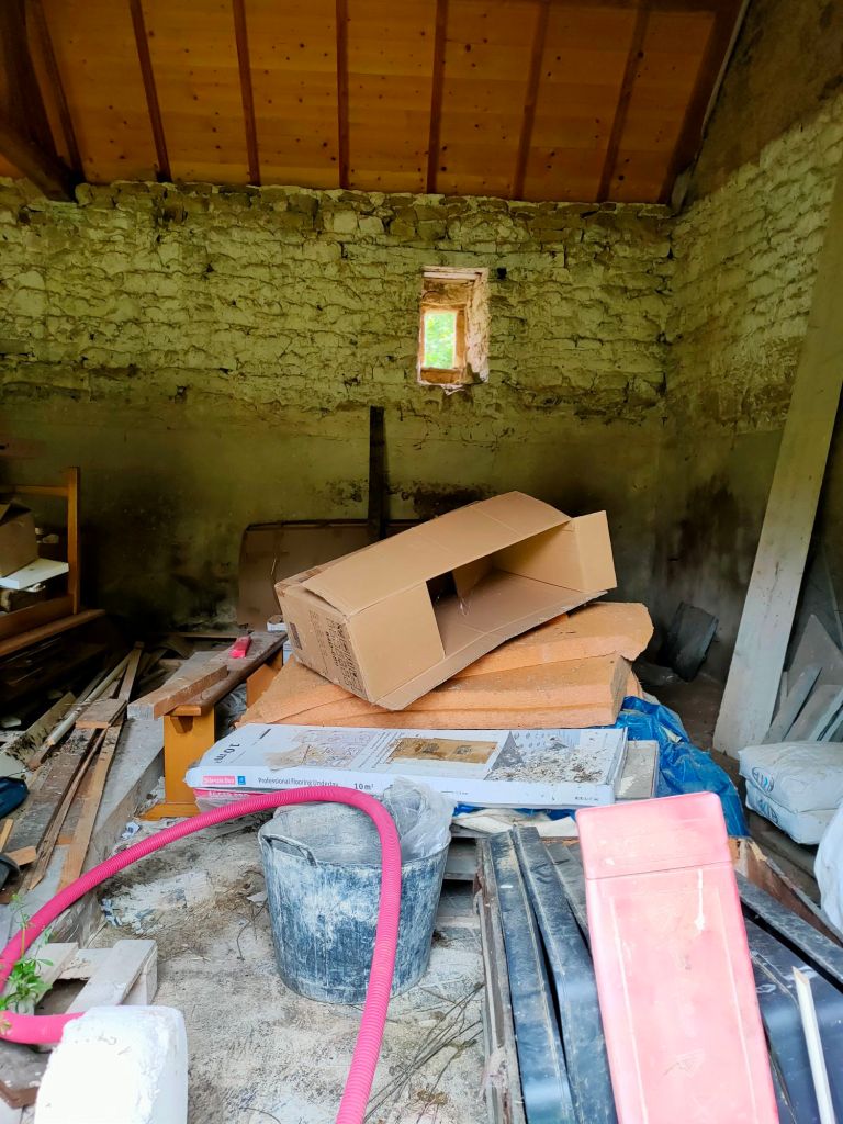 Le bas de la longère commence à se vider, même s’il en reste encore beaucoup. On continue le tri, ça jette pas mal aussi. Les vieux cartons sont réservés pour la préparation de la future zone à fraisier pour l’an prochain.