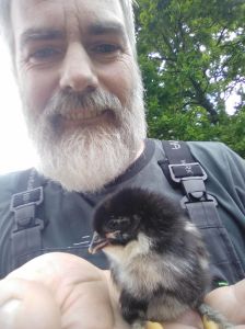 On passe à 9 gallinacés dans le champ : Victoria qui s’était mise à couver s’est retrouvée un beau matin avec quelques œufs fécondés sous son derrière. Quelques jours plus tard, 5 poussins ont vu le jour dans le jardin.