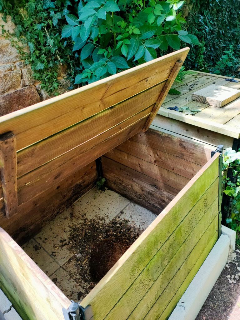 Tous les ans, autour du 21 juin, on en profite pour faire le changement du bac à compost des toilettes sèches : on vide celui qui a maintenant 3 ans, on garde ce beau compost bien noir de côté, et on reprend les vidanges sur une base neuve.