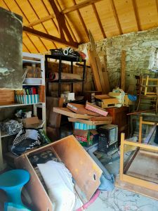 L’objectif final étant d’accueillir dans la longère un espace salon et le bureau de Gwen, la première action consiste (encore et toujours) à vider et ranger.