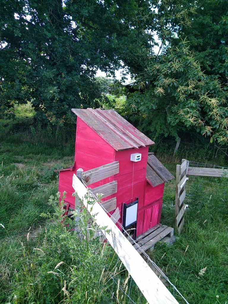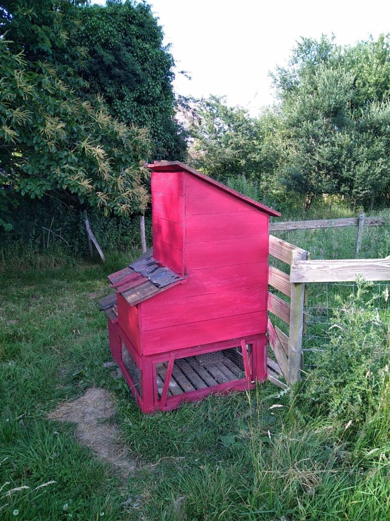 Les poules trouvent naturellement une maison toute retapée pour la belle saison : retour au rouge pour le poulailler qui avait été étendu mais jamais repeint depuis le confinement. Une deuxième couche s’imposera sans grands doutes.