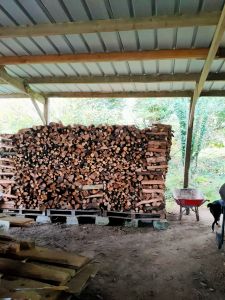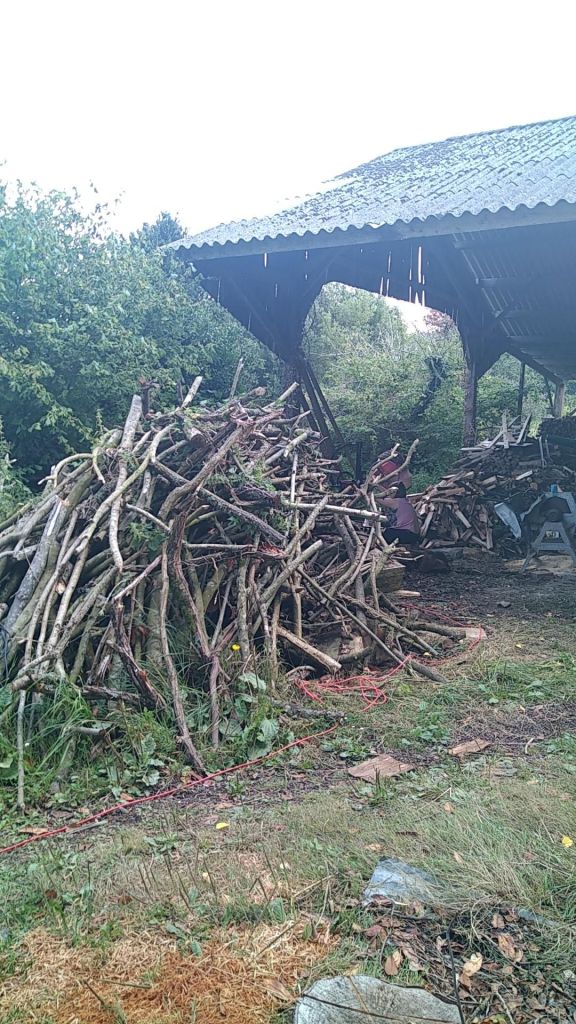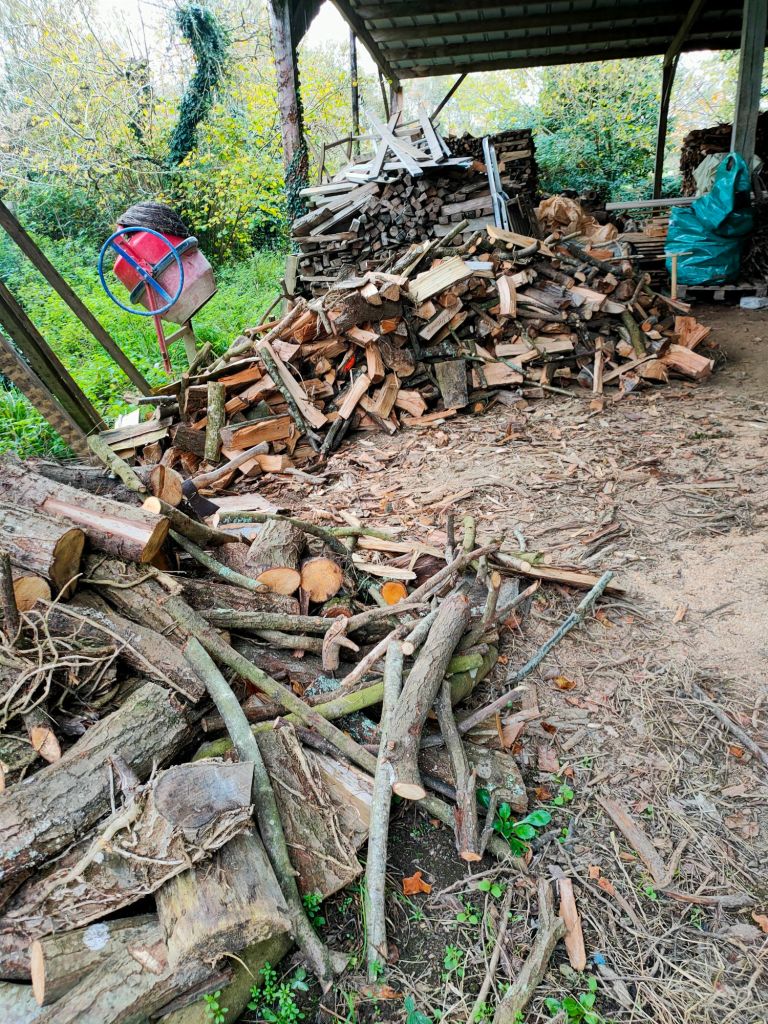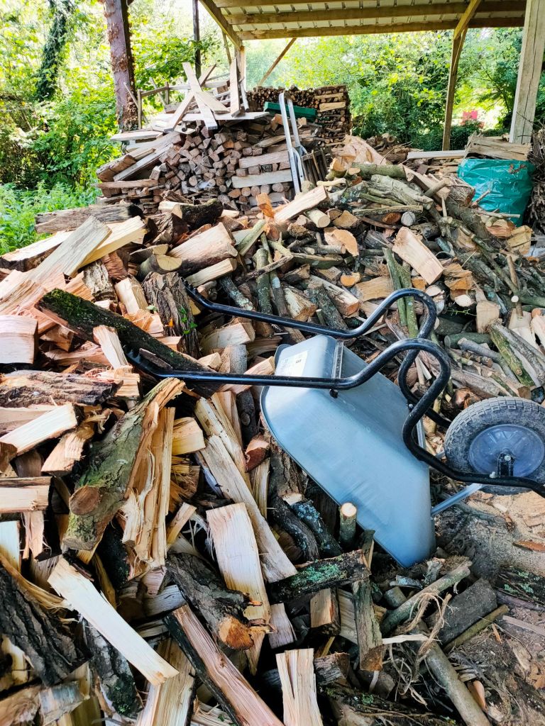 A la sortie de l’été, nous avions un principal projet : lancer le rangement du bois, créer un nouveau tas, fendre en veux-tu en voilà, scier, classer, … le bois.