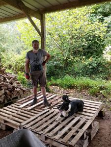 Début d’installation du nouveau tas, avec Chipouillette en mode niveau à bulle (efficacité peu validée à ce jour).