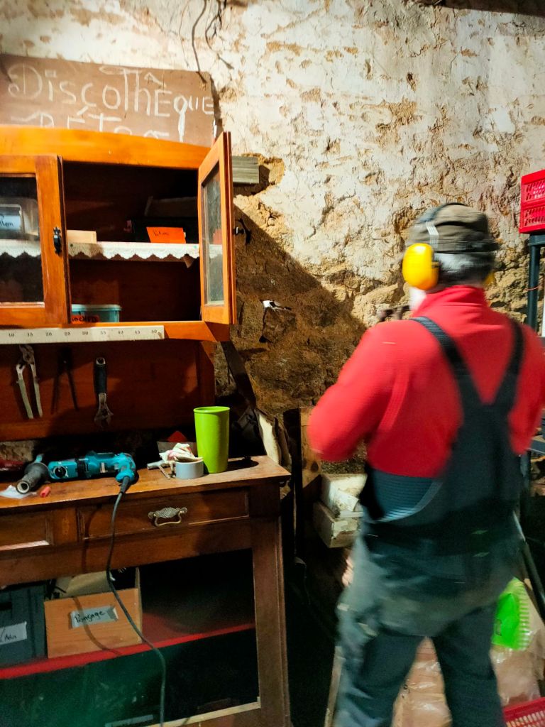 Mais nous avons toujours des sujets à faire avance. La mission 2025 c’est un canapé : où ? comment ? dans la longère, ce qui implique quelques petites actions à lancer : créer une ouverture au nord dans le bas, vider et vider, casser la cloison, casser le sol, hérisson + dalle…