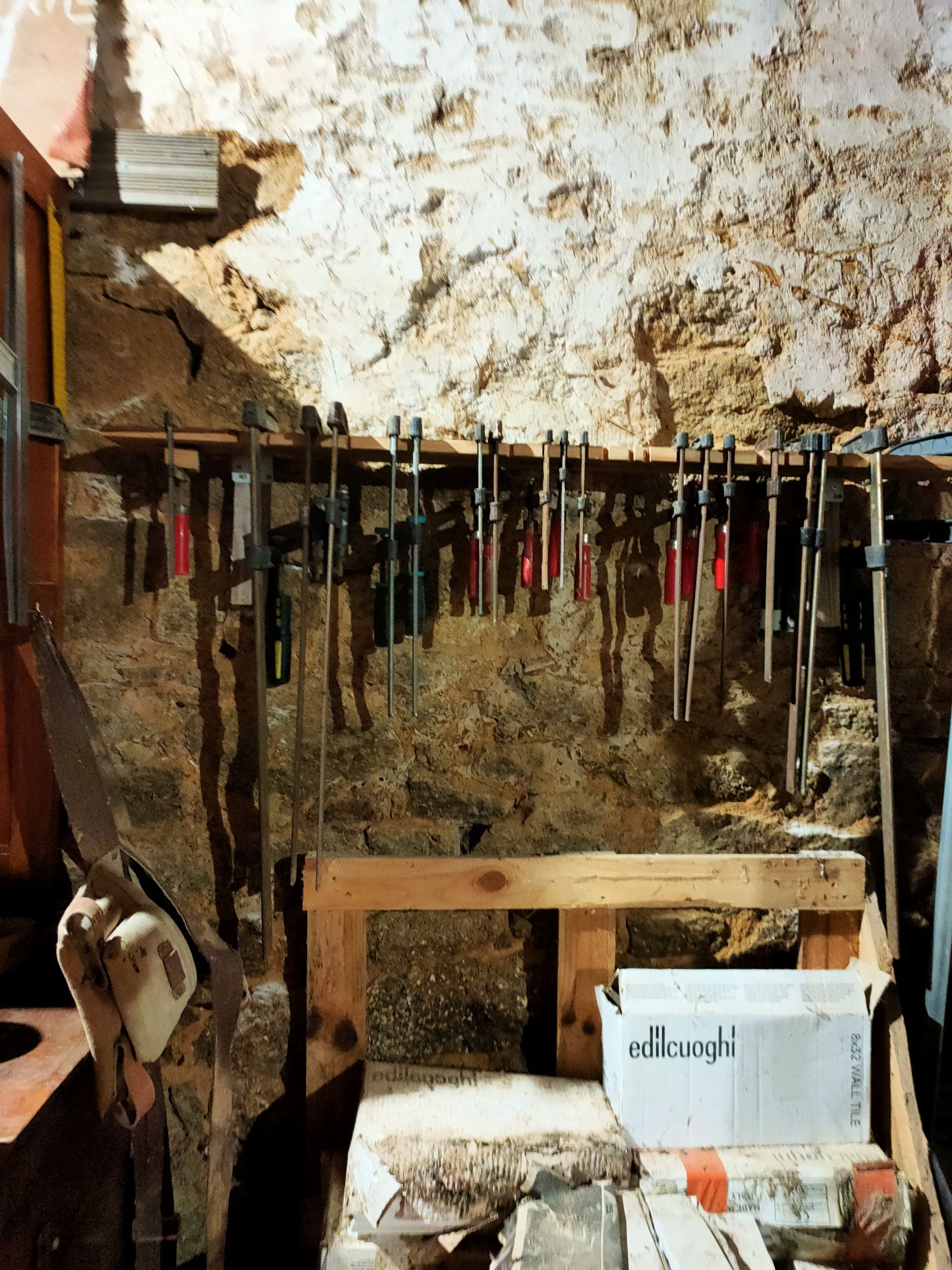 Dans la grange, on attaque le classement. L’idée c’est de vider le haut de la longère (dont le chantier n’a jamais été aussi proche de reprendre) et de déplacer l’atelier ici. Souci majeur : comment ranger et garder cet espace pratique pour nos activités de bricoleurs ?