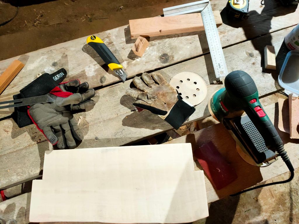 Mesures prises, planches dégottée dans le hangar, la première étape a été de créer des taquets de support.
