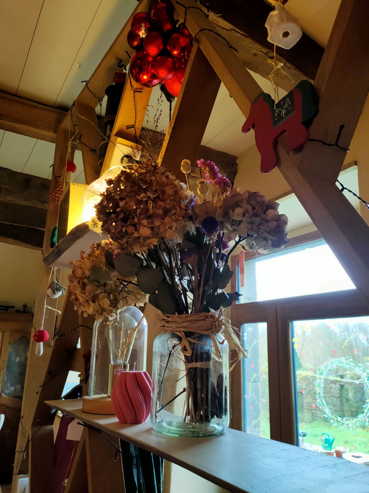 Décoration de saison pour la maison qui nous on donné l’envie d’installer les étagères prévues initialement sur la cloison de l’entrée.