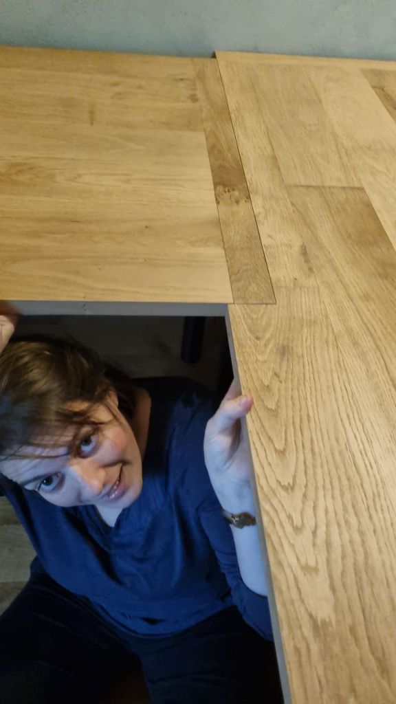 Un espace de travail bien plus large, de quoi faire un puzzle ou couper du tissu tout en gardant mon bureau pour tous les jours.