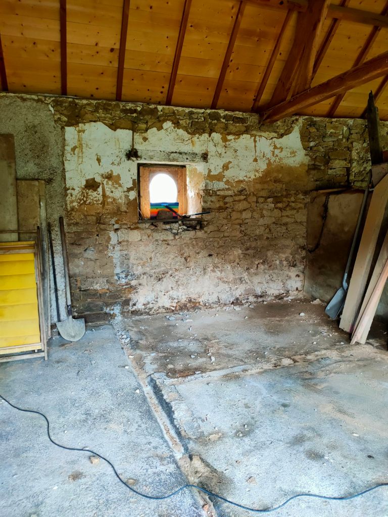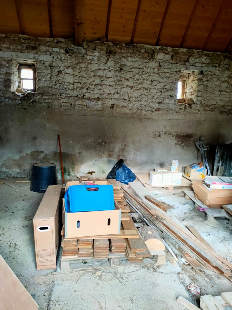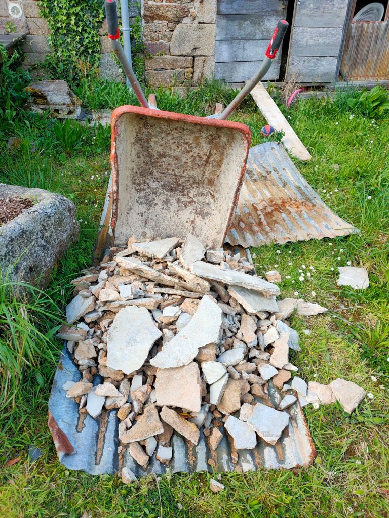 Le burineur a été sorti du placard et un peu d’enduit enlevé. Cette fois ci, nous allons essayer de nous améliorer en tri des déchets, un tas ciment d’un côté, les pierres puis la terre de l’autre.