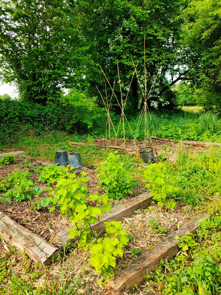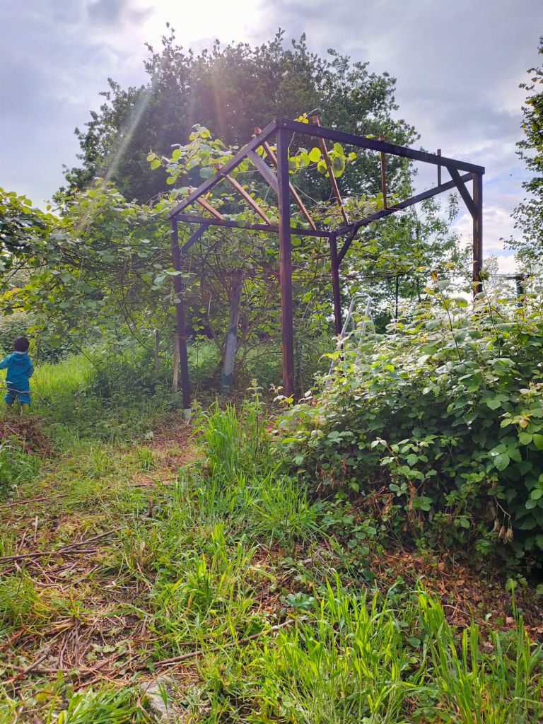 D’autres petites installations au jardin ont vu le jour : une structure toute belle pour porter les kiwis (dont la production devrait être plus que raisonnable cette année), et deux nouveaux spots pour le potager.
